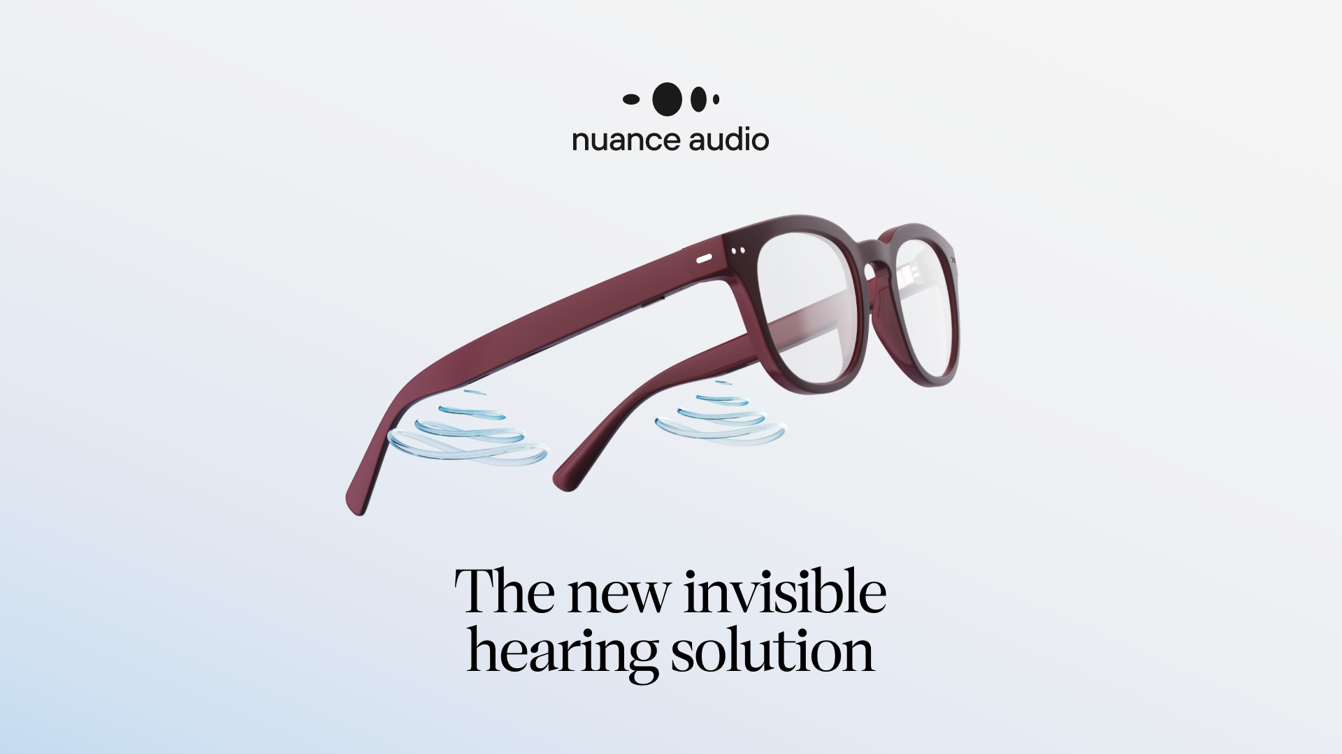 Nuance audio are special glasses designed to help people hear better. These glasses have built-in speakers and microphones, allowing wearers to hear sounds more clearly, without needing bulky headphones. The technology helps amplify sound and can filter out background noise, making it easier to hear conversations or other important sounds.